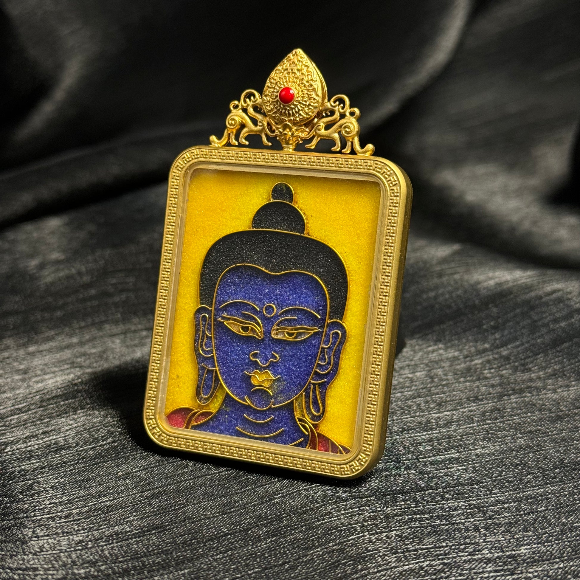 Bhaisajyaguru Buddha is often depicted in deep blue, symbolizing the purity of healing, and his expression conveys compassionate wisdom. Wearing his image as a pendant offers constant healing energy and protection, making it an ideal spiritual companion.