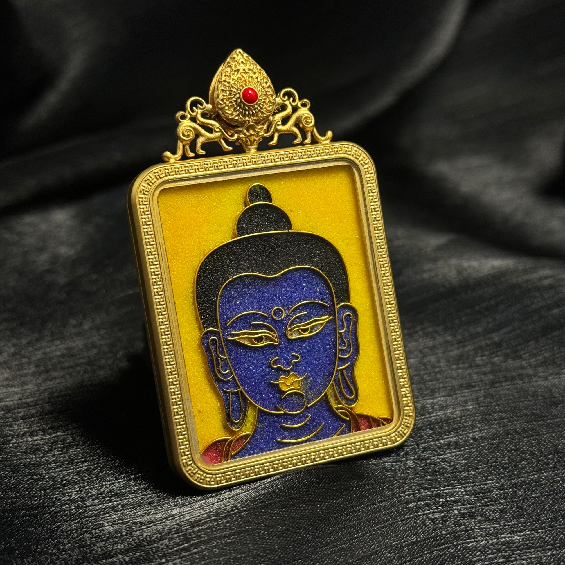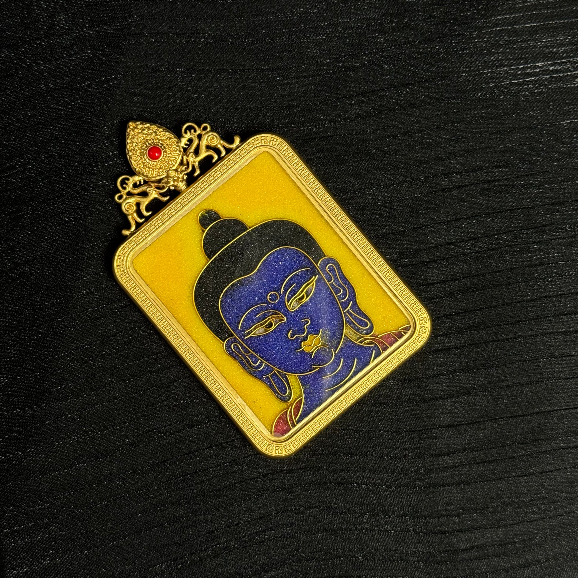 Medicine Buddha (Bhaisajyaguru Buddha) Cloisonné Enamel Pendant – Handcrafted with 24K Gold Plated Copper Shell | 4×5 cm